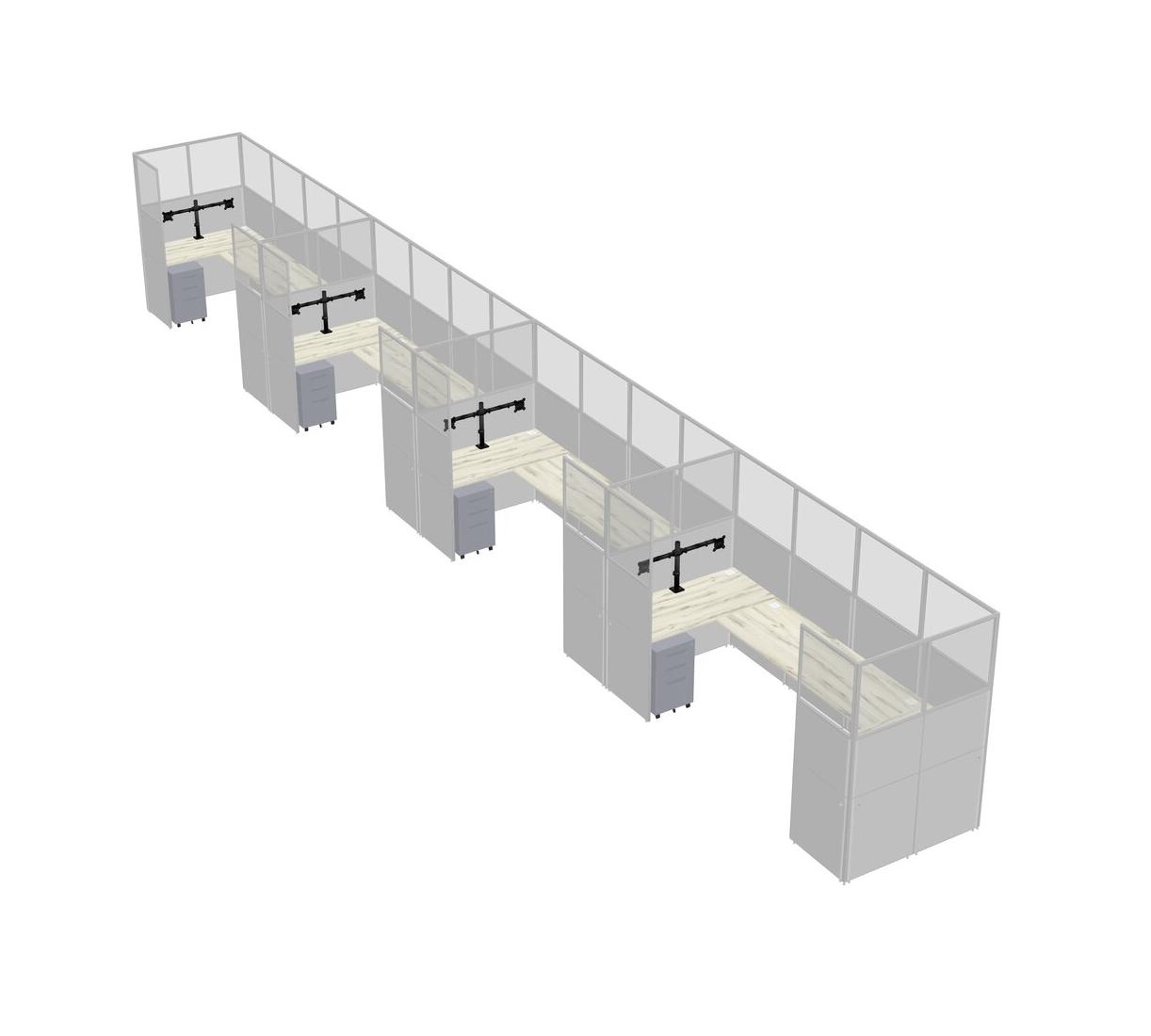Système De Panneaux En U Heinne Holz Pour 4 Personnes + Bras D'écran (bras Doubles) + Tiroirs Mobiles En Métal Pour 4 Utilisateur(s)