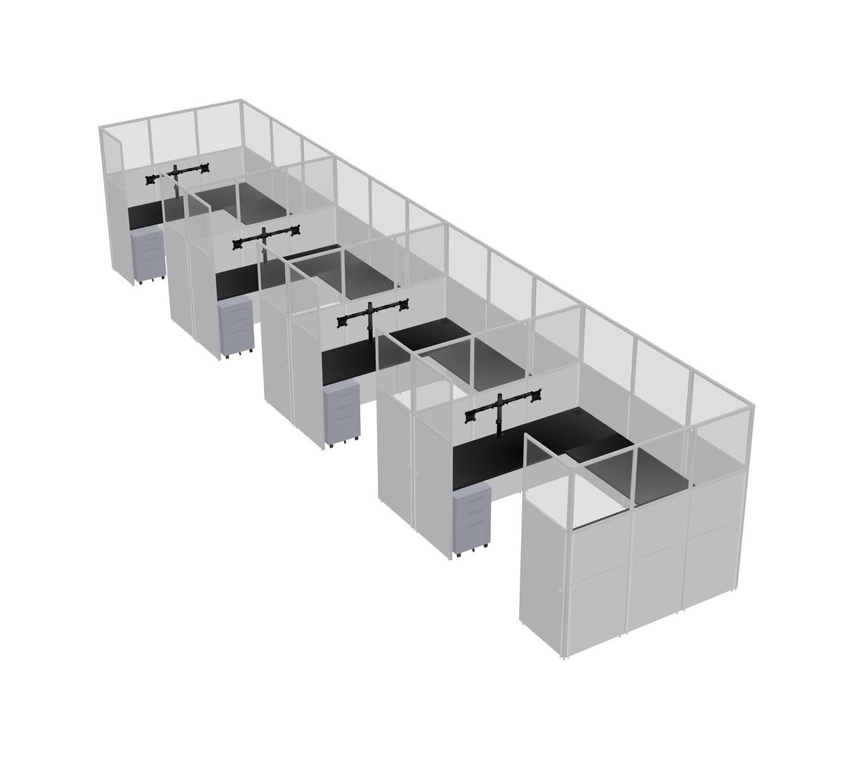 Système De Panneaux En U Noir Pour 4 Personnes + Bras D'écran (bras Doubles) + Tiroirs Mobiles En Métal Pour 4 Utilisateur(s)