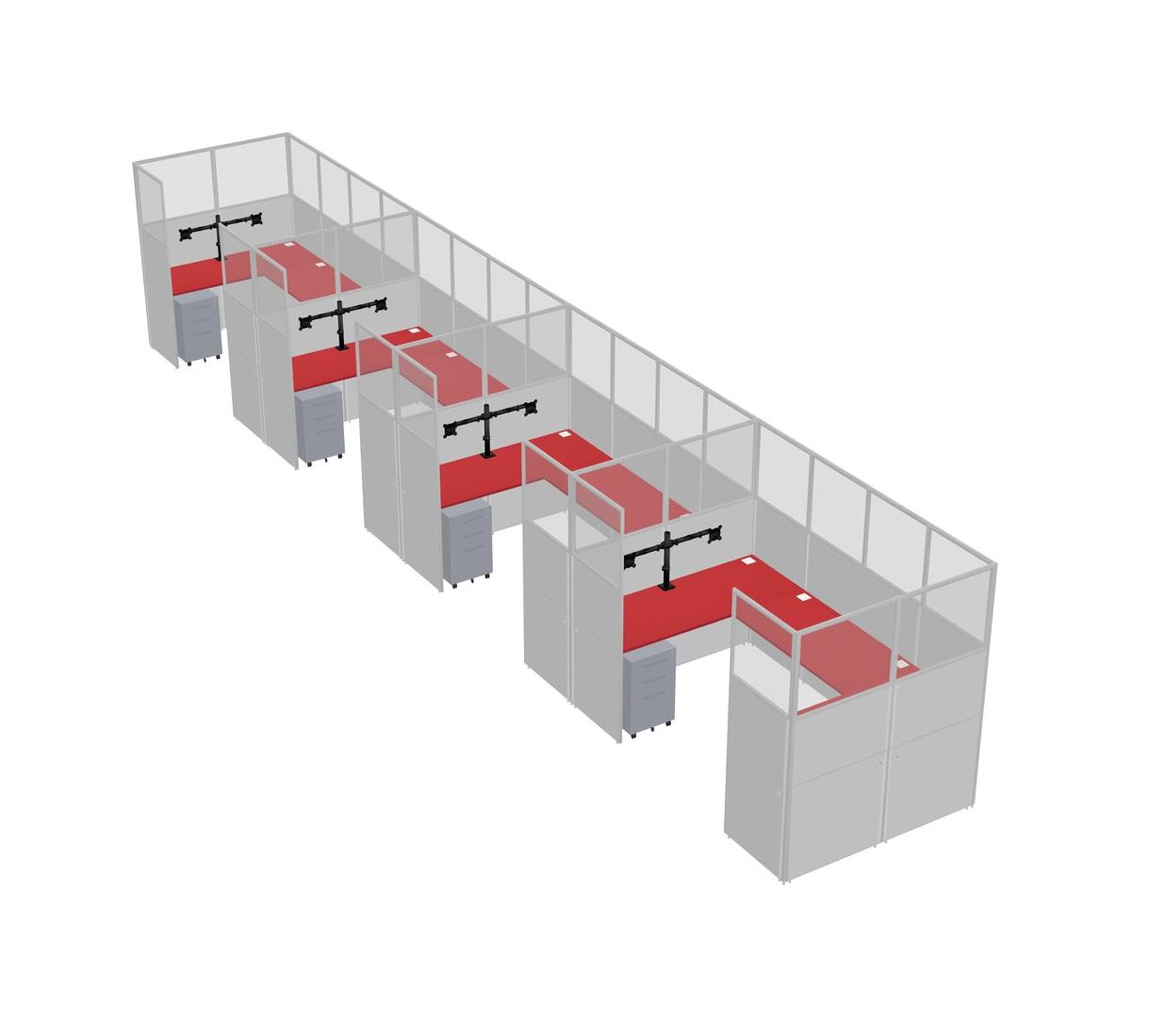Système De Panneaux En U Prism Red Pour 4 Personnes + Bras D'écran (bras Doubles) + Tiroirs Mobiles En Métal Pour 4 Utilisateur(s)