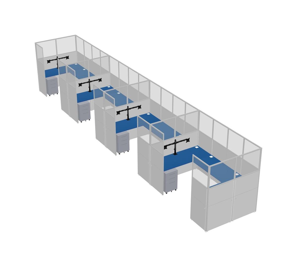 Système De Panneaux En U Prism Blue Pour 4 Personnes + Bras D'écran (bras Doubles) + Tiroirs Mobiles En Métal Pour 4 Utilisateur(s)