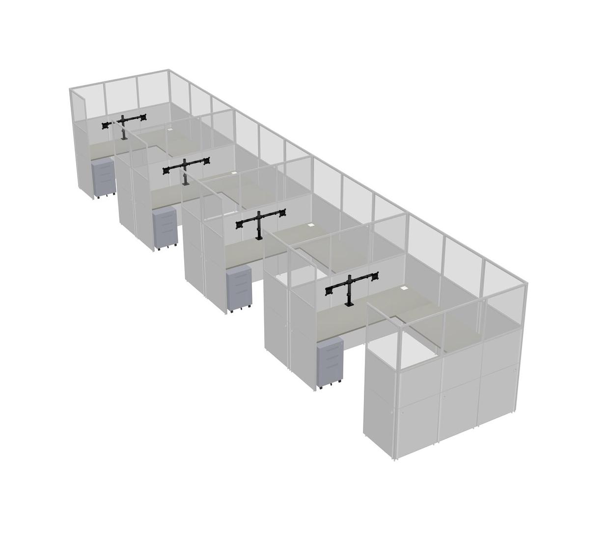Système De Panneaux En U Grey Shadows Pour 4 Personnes + Bras D'écran (bras Doubles) + Tiroirs Mobiles En Métal Pour 4 Utilisateur(s)
