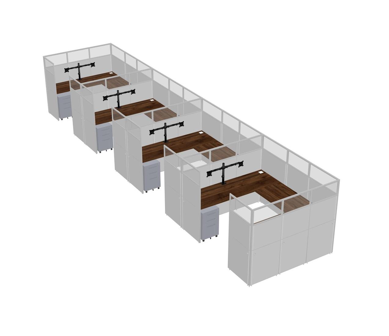 Système De Panneaux En U En Noyer Columbia Pour 4 Personnes + Bras D'écran (bras Doubles) + Tiroirs Mobiles En Métal Pour 4 Utilisateur(s)