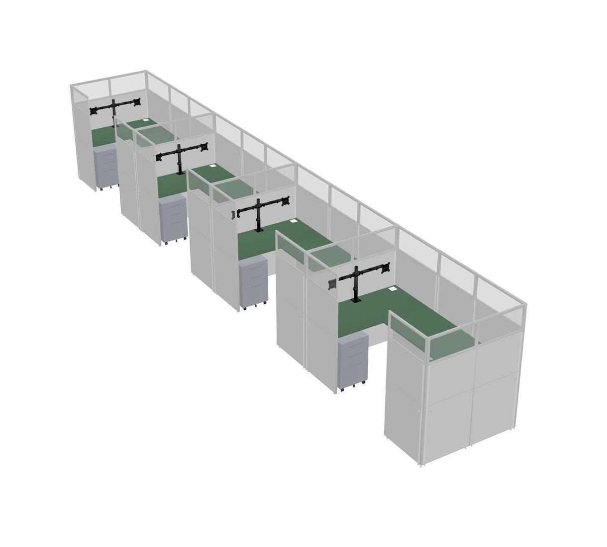 Système De Panneaux En U Vert Pour 4 Personnes + Bras De Moniteur (bras Doubles) + Tiroirs Mobiles En Métal Pour 4 Utilisateur(s)