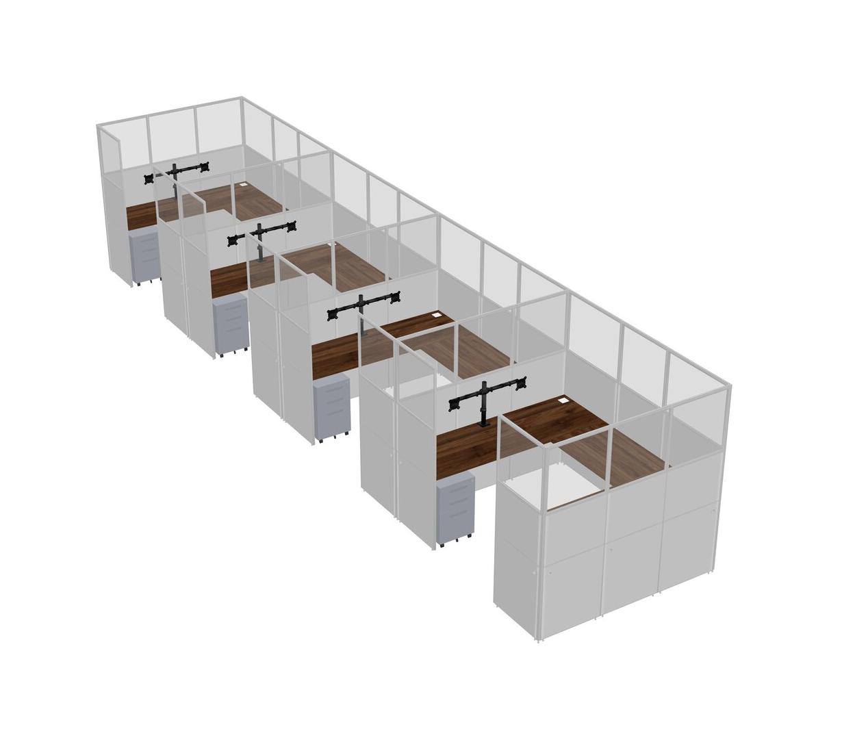Système De Panneaux En U En Noyer Columbia Pour 4 Personnes + Bras D'écran (bras Doubles) + Tiroirs Mobiles En Métal Pour 4 Utilisateur(s)