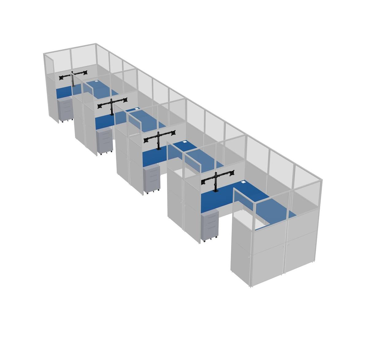 Système De Panneaux En U Prism Blue Pour 4 Personnes + Bras D'écran (bras Doubles) + Tiroirs Mobiles En Métal Pour 4 Utilisateur(s)