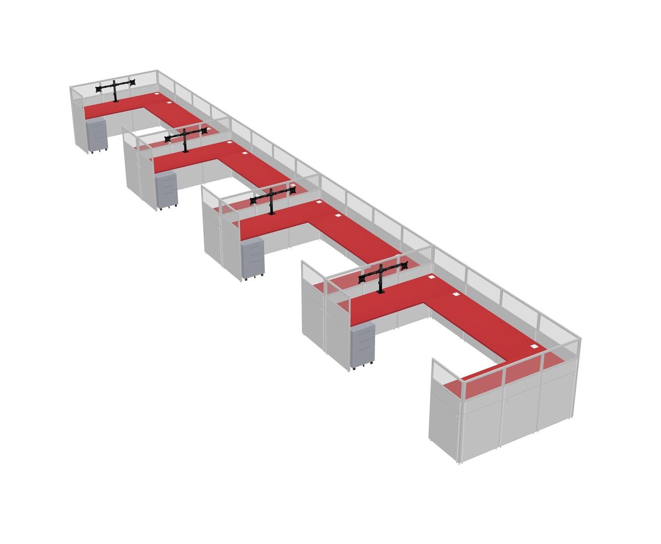 Système De Panneaux En U Prism Red Pour 4 Personnes + Bras D'écran (bras Doubles) + Tiroirs Mobiles En Métal Pour 4 Utilisateur(s)