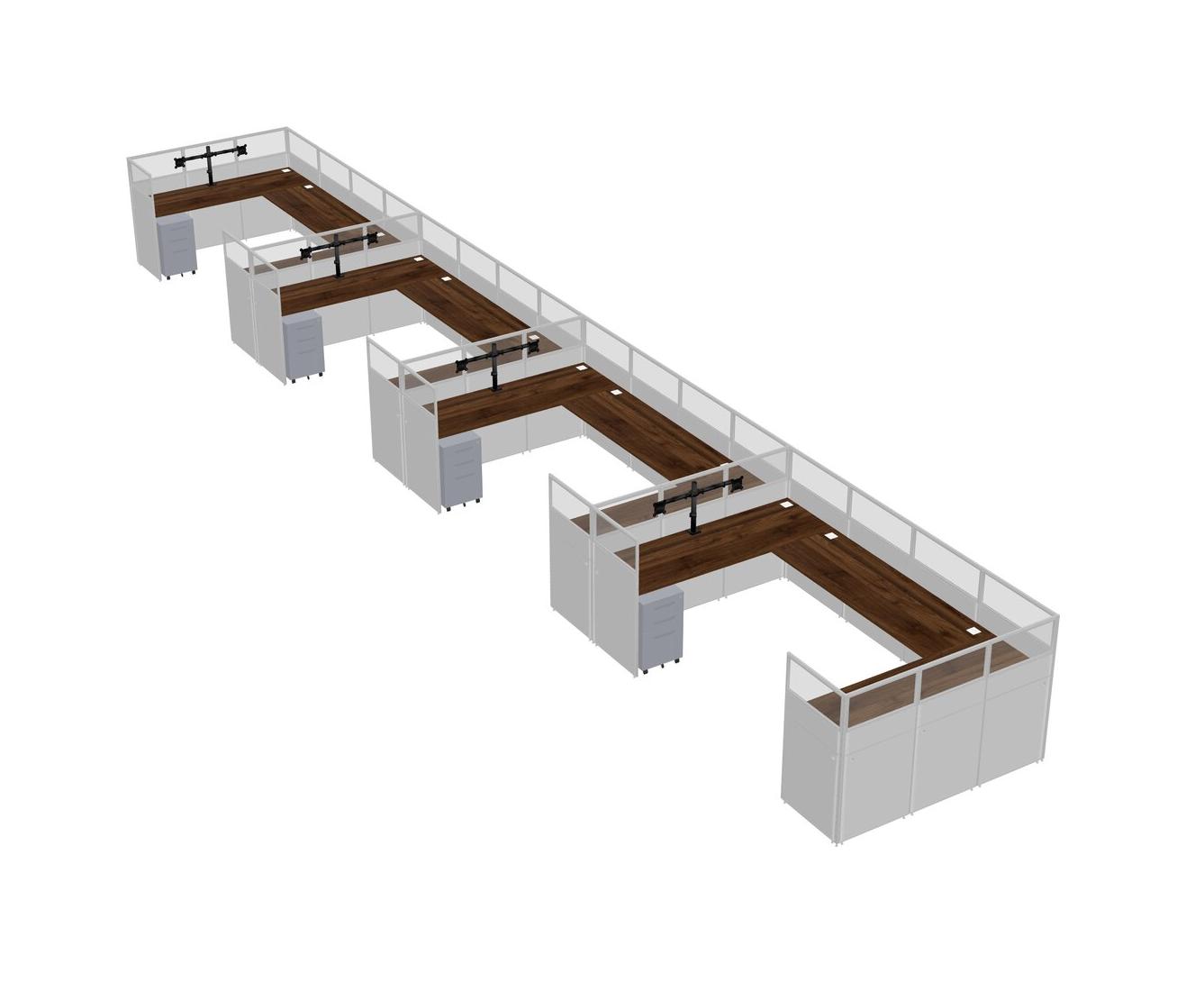 Système De Panneaux En U En Noyer Columbia Pour 4 Personnes + Bras D'écran (bras Doubles) + Tiroirs Mobiles En Métal Pour 4 Utilisateur(s)