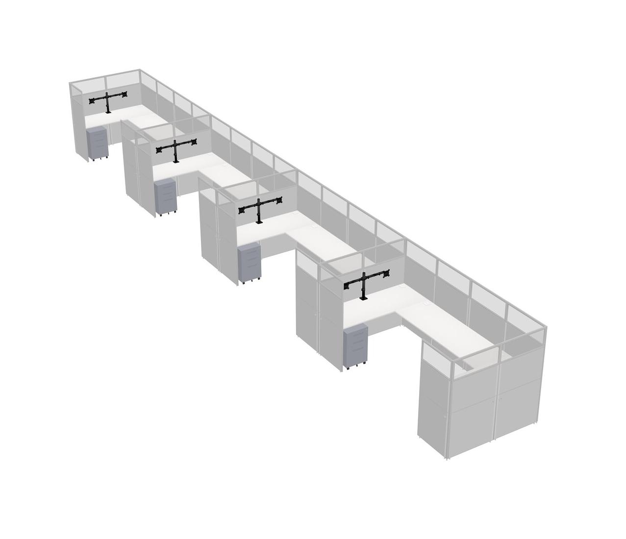 Système De Panneaux Blancs En U Pour 4 Personnes + Bras D'écran (bras Doubles) + Tiroirs Mobiles En Métal Pour 4 Utilisateur(s)