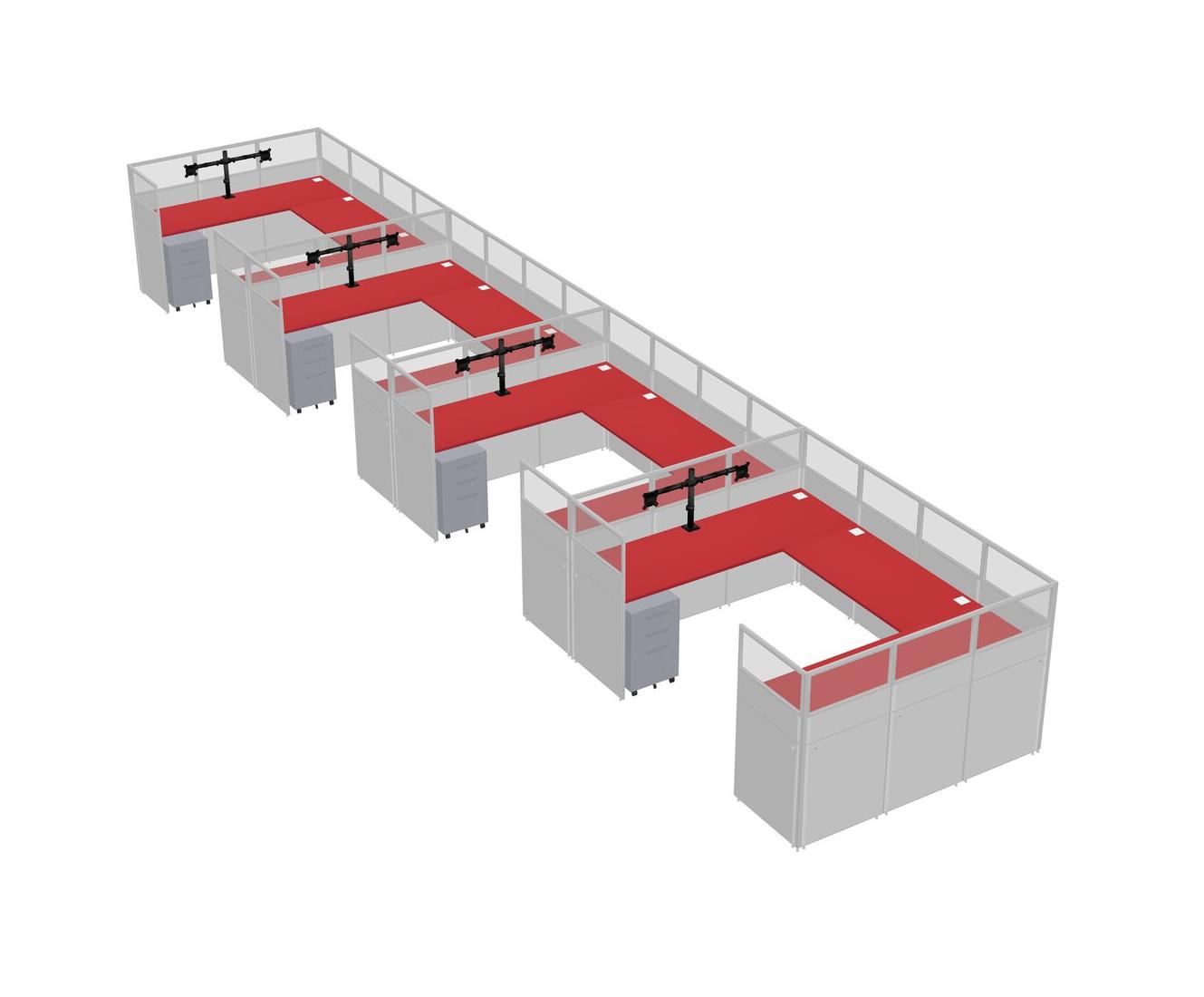 Système De Panneaux En U Prism Red Pour 4 Personnes + Bras D'écran (bras Doubles) + Tiroirs Mobiles En Métal Pour 4 Utilisateur(s)
