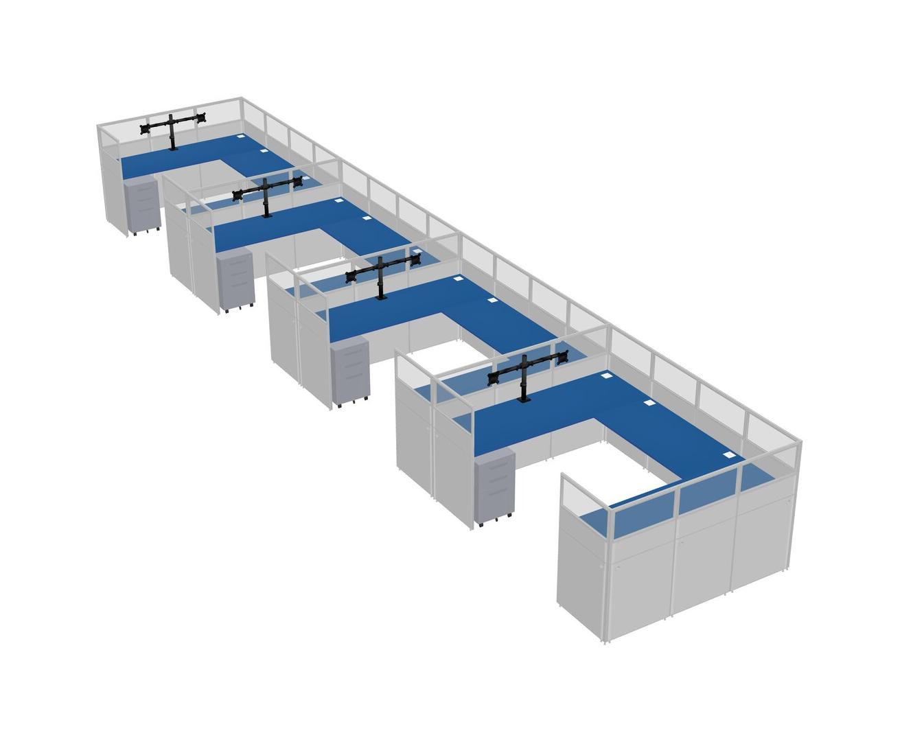Système De Panneaux En U Prism Blue Pour 4 Personnes + Bras D'écran (bras Doubles) + Tiroirs Mobiles En Métal Pour 4 Utilisateur(s)