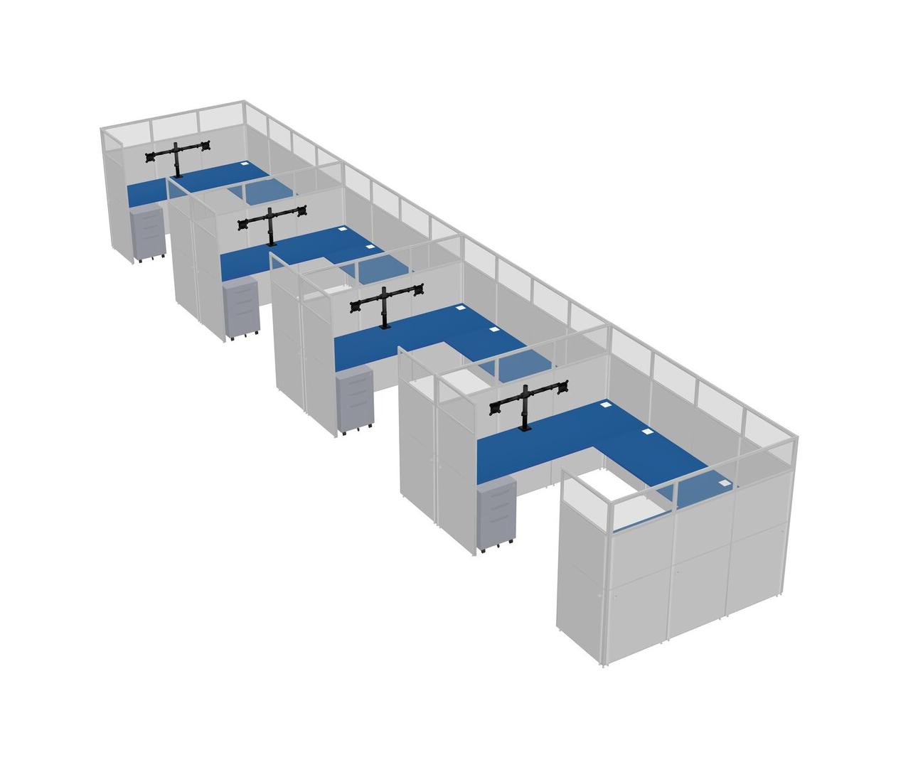 Système De Panneaux En U Prism Blue Pour 4 Personnes + Bras D'écran (bras Doubles) + Tiroirs Mobiles En Métal Pour 4 Utilisateur(s)