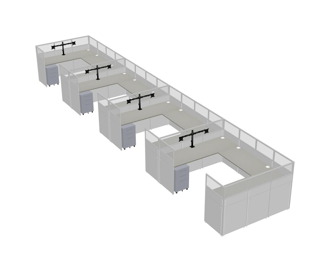 Système De Panneaux En U Grey Shadows Pour 4 Personnes + Bras D'écran (bras Doubles) + Tiroirs Mobiles En Métal Pour 4 Utilisateur(s)