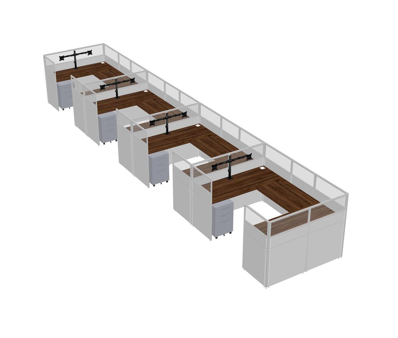 Système De Panneaux En U En Noyer Columbia Pour 4 Personnes + Bras D'écran (bras Doubles) + Tiroirs Mobiles En Métal Pour 4 Utilisateur(s)