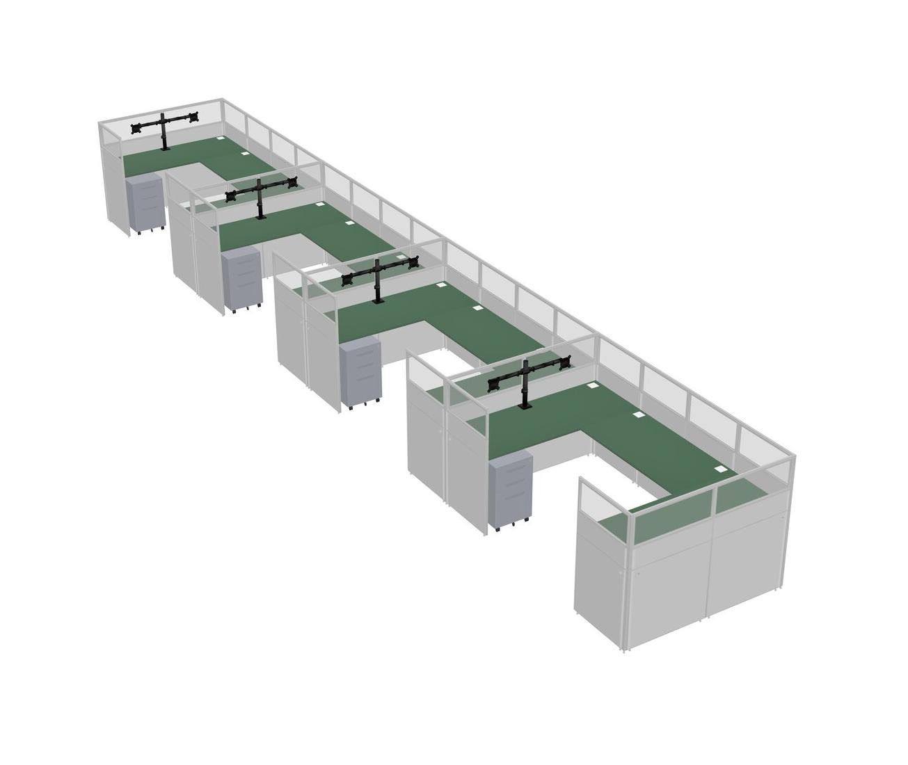 Système De Panneaux En U Vert Pour 4 Personnes + Bras De Moniteur (bras Doubles) + Tiroirs Mobiles En Métal Pour 4 Utilisateur(s)