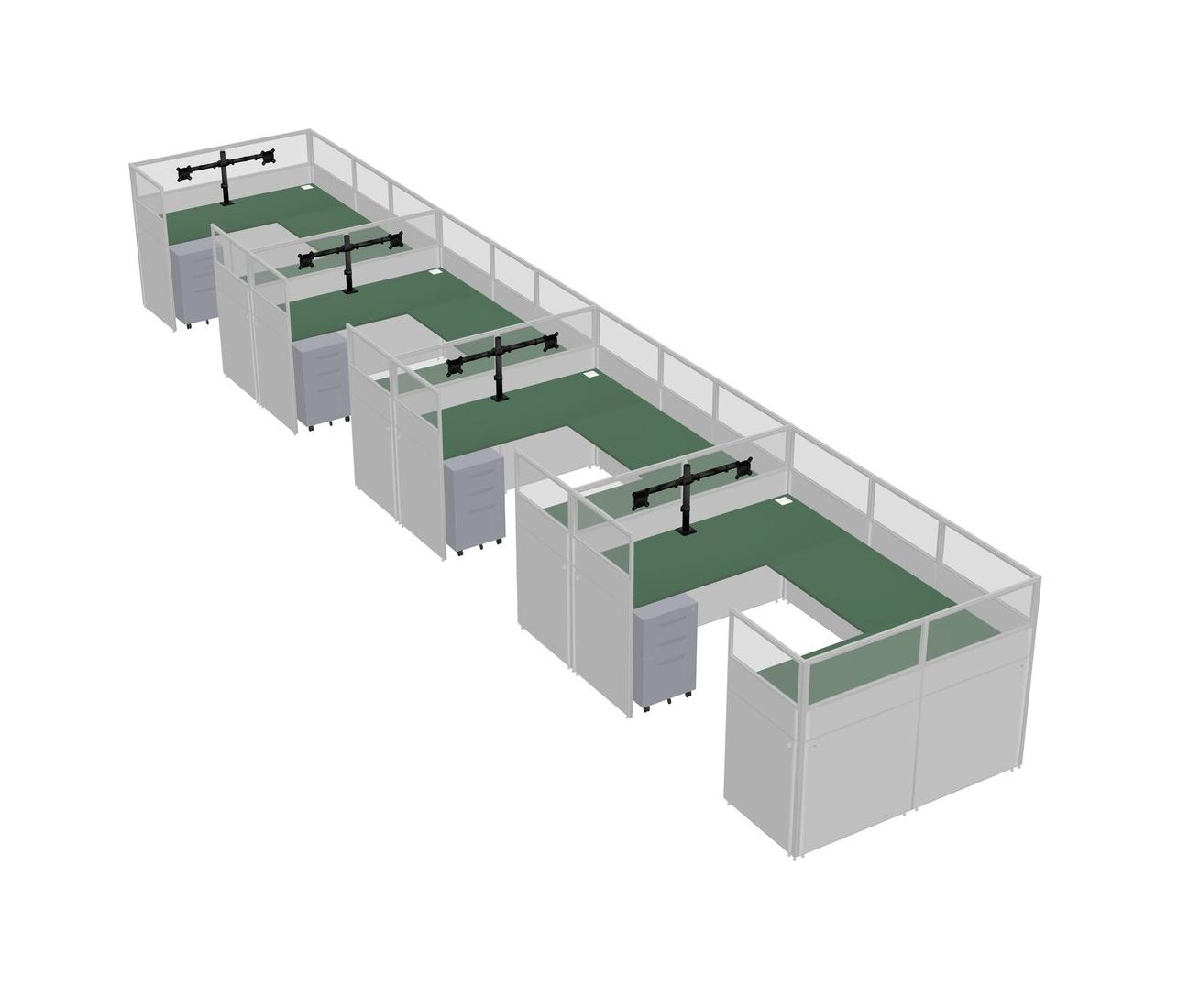 Système De Panneaux En U Vert Pour 4 Personnes + Bras De Moniteur (bras Doubles) + Tiroirs Mobiles En Métal Pour 4 Utilisateur(s)