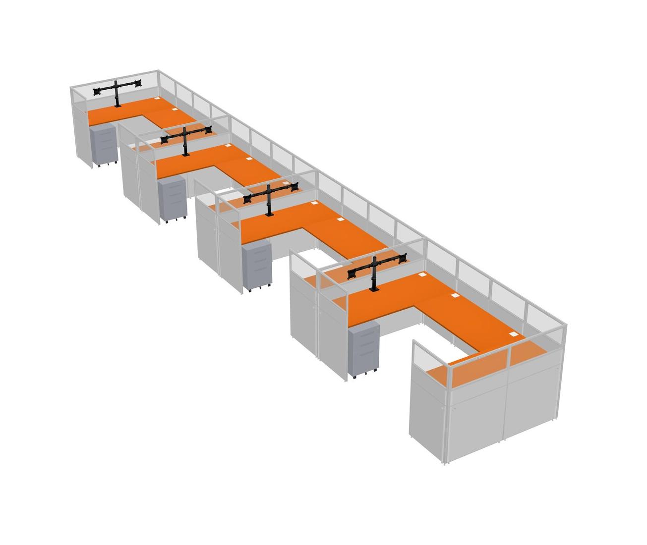 Système De Panneaux En U Orange Pour 4 Personnes + Bras De Moniteur (bras Doubles) + Tiroirs Mobiles En Métal Pour 4 Utilisateur(s)
