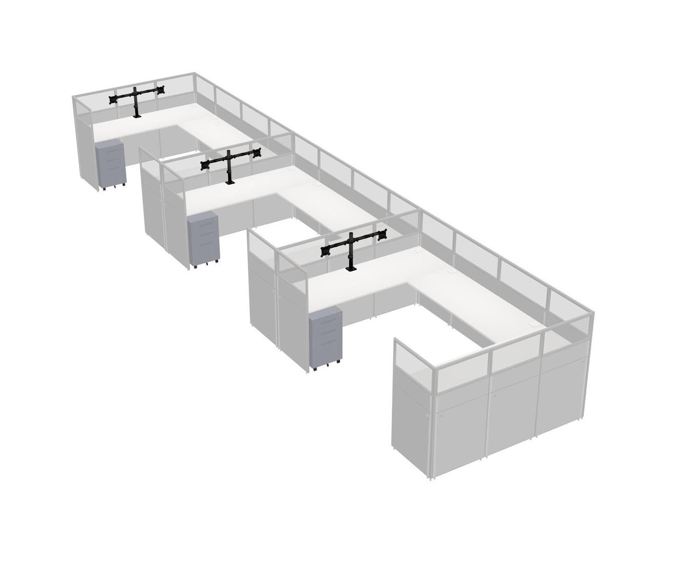 Système De Panneaux Blancs En U Pour 3 Personnes + Bras D'écran (bras Doubles) + Tiroirs Mobiles En Métal Pour 3 Utilisateur(s)