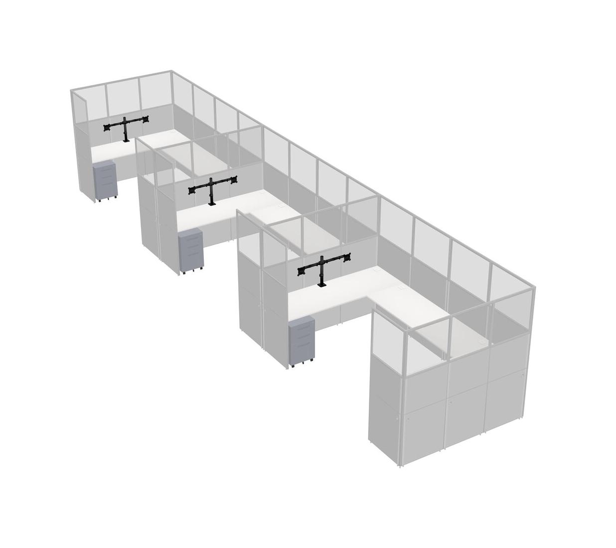 Système De Panneaux Blancs En U Pour 3 Personnes + Bras D'écran (bras Doubles) + Tiroirs Mobiles En Métal Pour 3 Utilisateur(s)