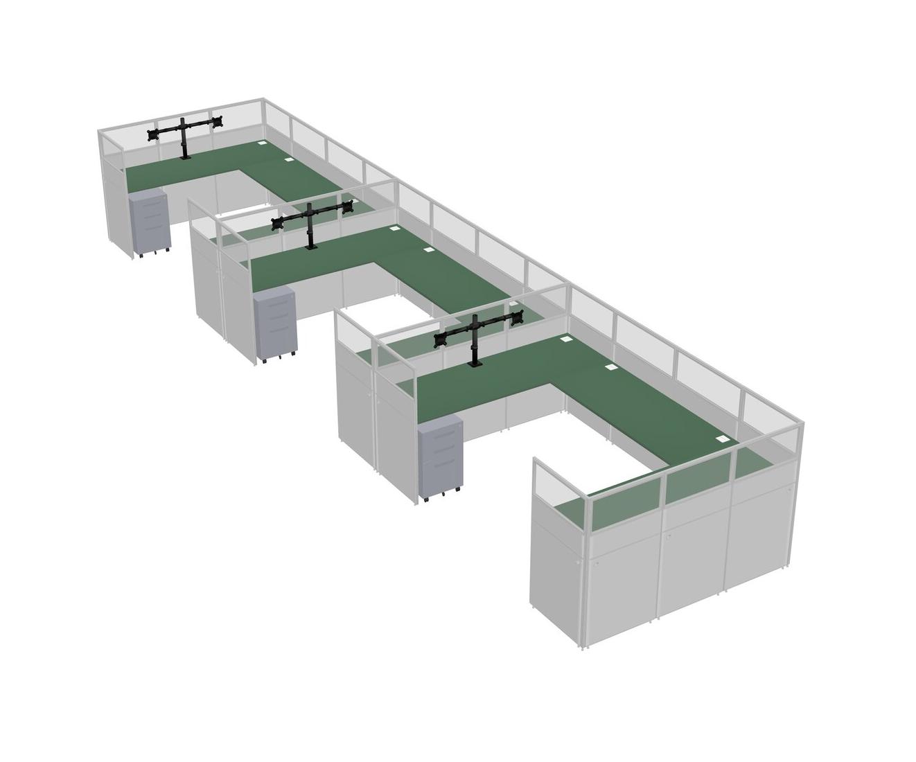 Système De Panneaux En U Vert Pour 3 Personnes + Bras De Moniteur (bras Doubles) + Tiroirs Mobiles En Métal Pour 3 Utilisateur(s)