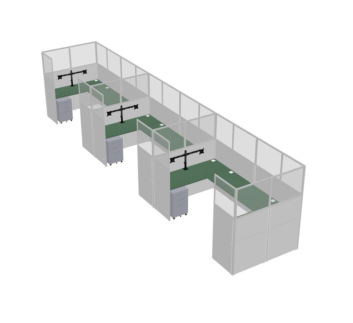 Système De Panneaux En U Vert Pour 3 Personnes + Bras De Moniteur (bras Doubles) + Tiroirs Mobiles En Métal Pour 3 Utilisateur(s)