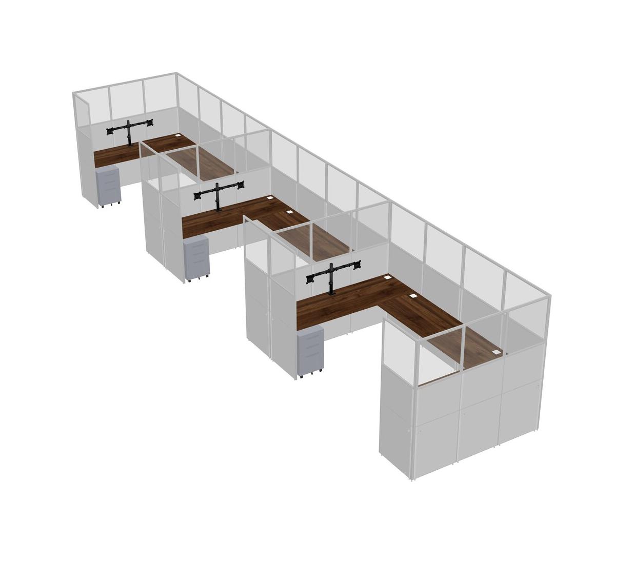 Système De Panneaux En U En Noyer Columbia Pour 3 Personnes + Bras D'écran (bras Doubles) + Tiroirs Mobiles En Métal Pour 3 Utilisateur(s)