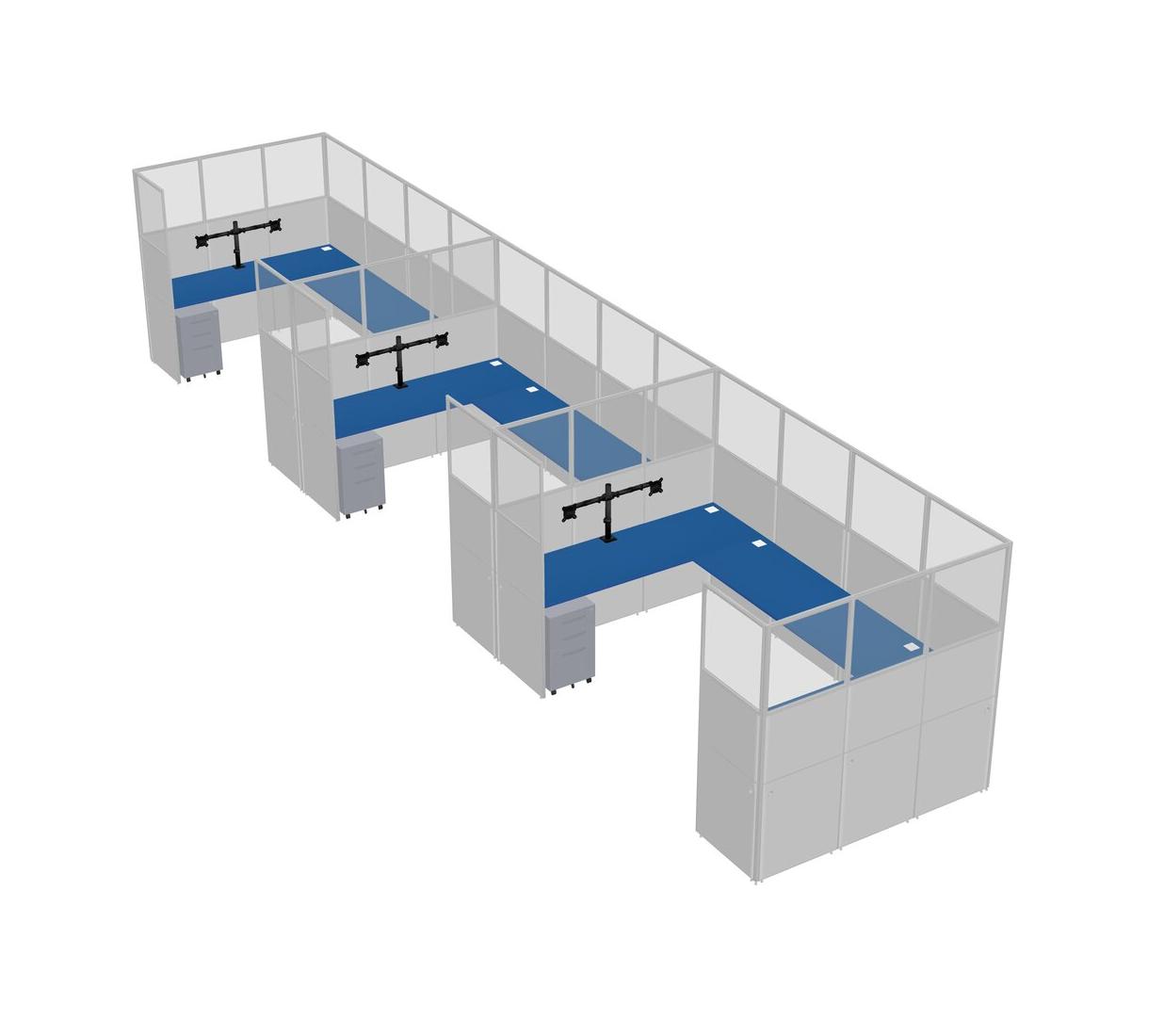 Système De Panneaux En U Prism Blue Pour 3 Personnes + Bras D'écran (bras Doubles) + Tiroirs Mobiles En Métal Pour 3 Utilisateur(s)