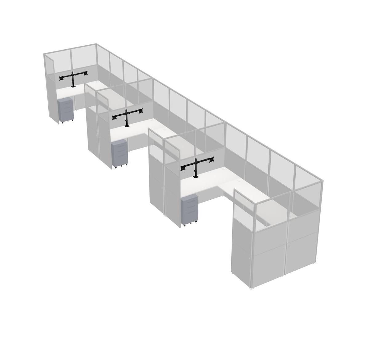 Système De Panneaux Blancs En U Pour 3 Personnes + Bras D'écran (bras Doubles) + Tiroirs Mobiles En Métal Pour 3 Utilisateur(s)