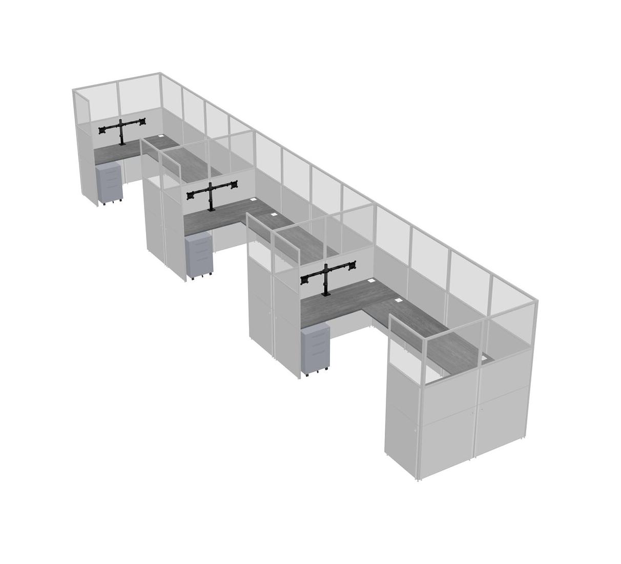 Système De Panneaux En U Gris Pour 3 Personnes + Bras D'écran (bras Doubles) + Tiroirs Mobiles En Métal Pour 3 Utilisateur(s)