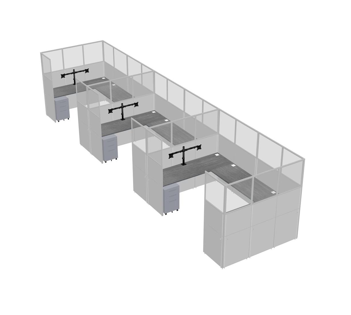 Système De Panneaux En U Gris Pour 3 Personnes + Bras D'écran (bras Doubles) + Tiroirs Mobiles En Métal Pour 3 Utilisateur(s)