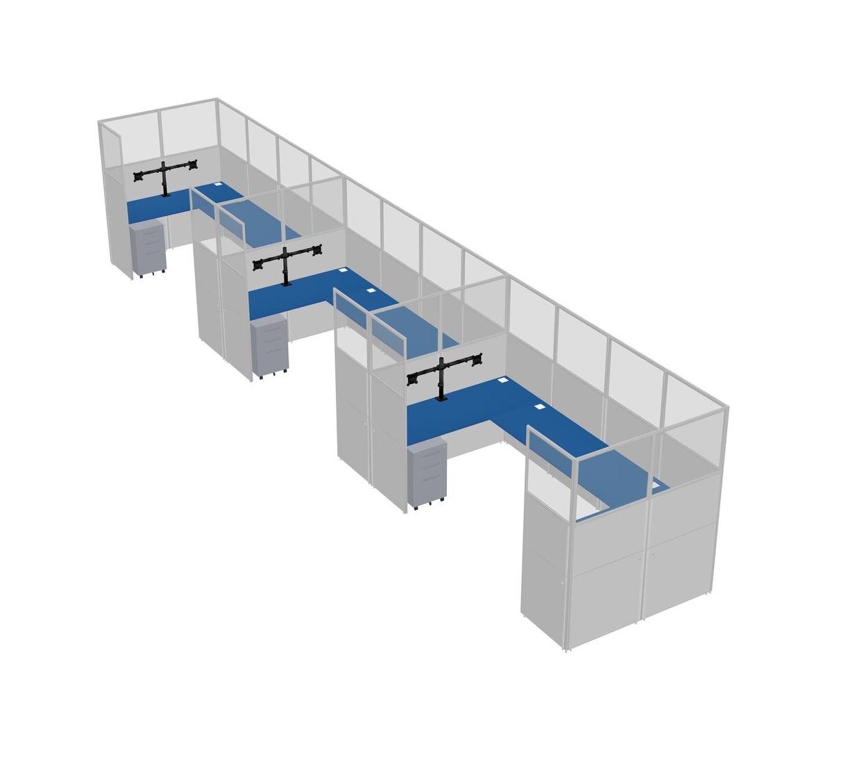 Système De Panneaux En U Prism Blue Pour 3 Personnes + Bras D'écran (bras Doubles) + Tiroirs Mobiles En Métal Pour 3 Utilisateur(s)