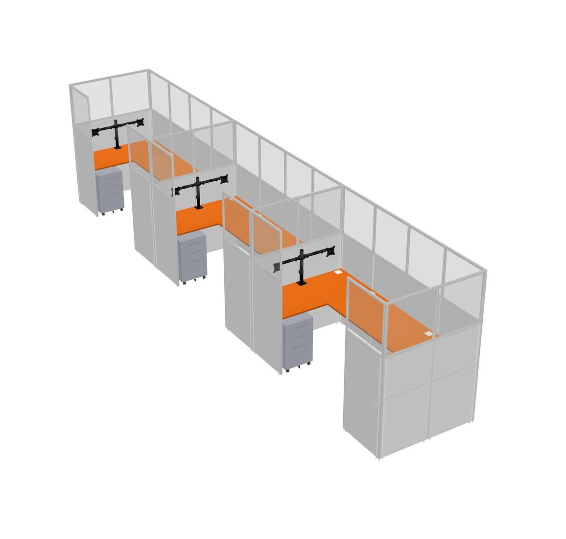 Système De Panneaux En U Orange Pour 3 Personnes + Bras De Moniteur (bras Doubles) + Tiroirs Mobiles En Métal Pour 3 Utilisateur(s)