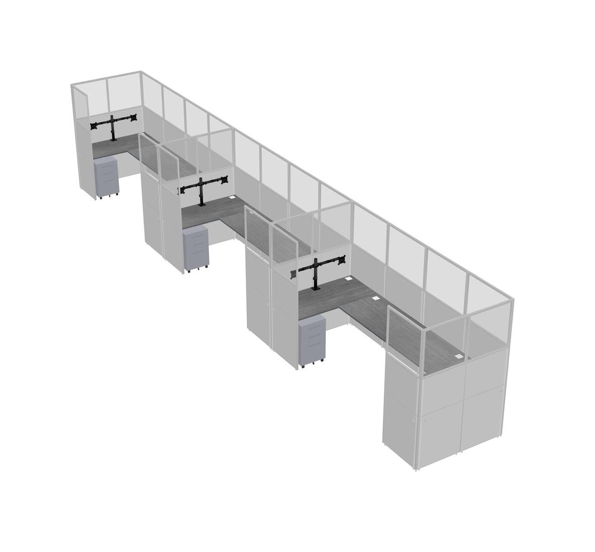 Système De Panneaux En U Gris Pour 3 Personnes + Bras D'écran (bras Doubles) + Tiroirs Mobiles En Métal Pour 3 Utilisateur(s)