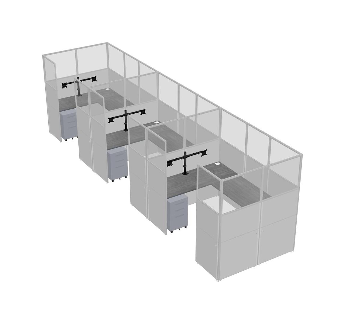 Système De Panneaux En U Gris Pour 3 Personnes + Bras D'écran (bras Doubles) + Tiroirs Mobiles En Métal Pour 3 Utilisateur(s)