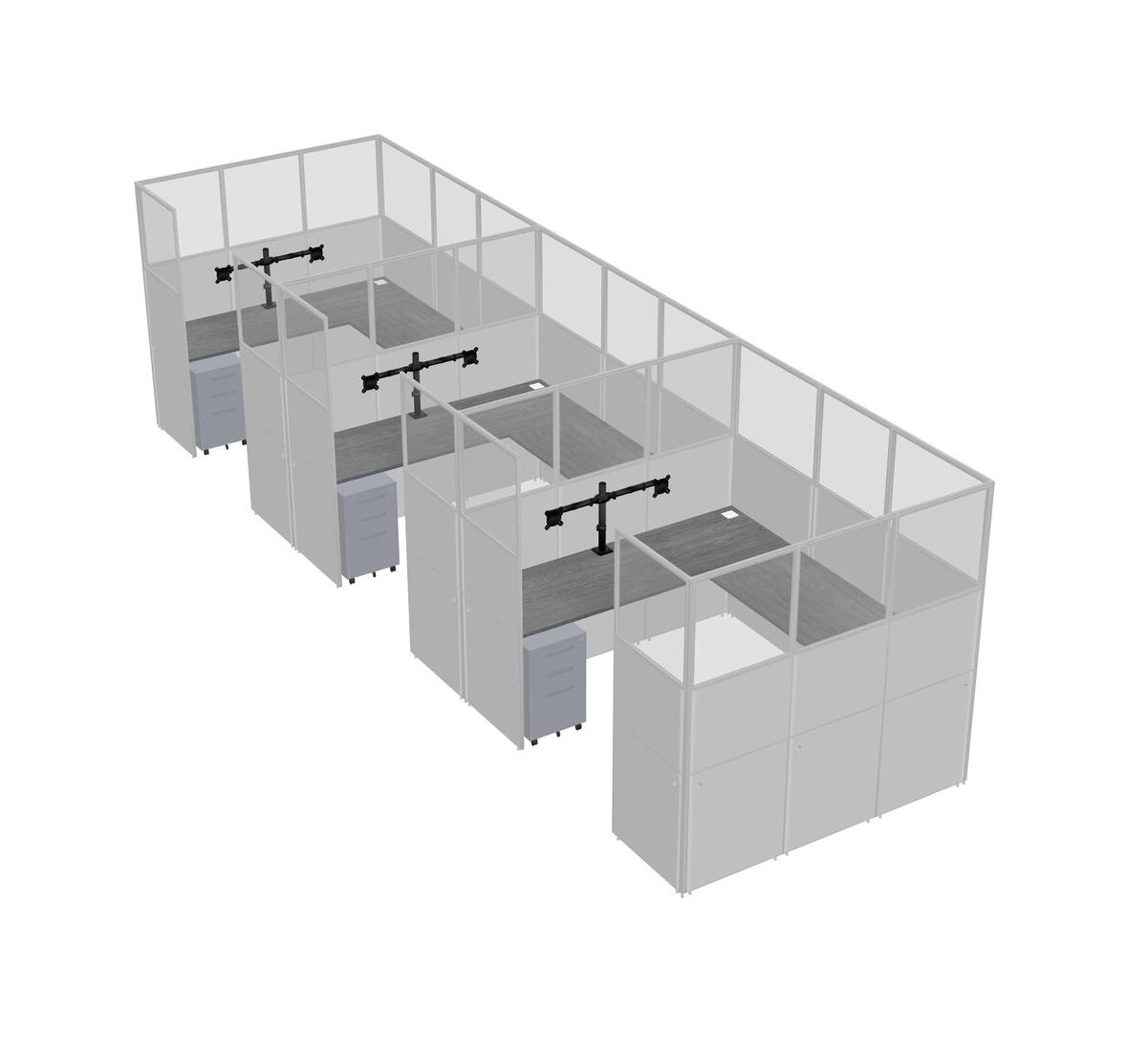 Système De Panneaux En U Gris Pour 3 Personnes + Bras D'écran (bras Doubles) + Tiroirs Mobiles En Métal Pour 3 Utilisateur(s)