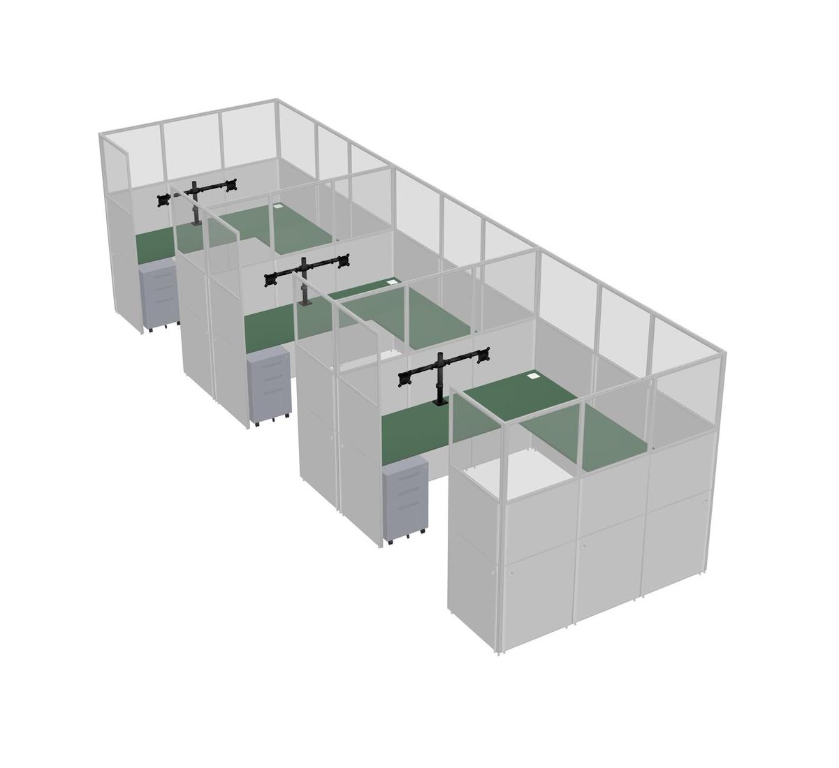 Système De Panneaux En U Vert Pour 3 Personnes + Bras De Moniteur (bras Doubles) + Tiroirs Mobiles En Métal Pour 3 Utilisateur(s)