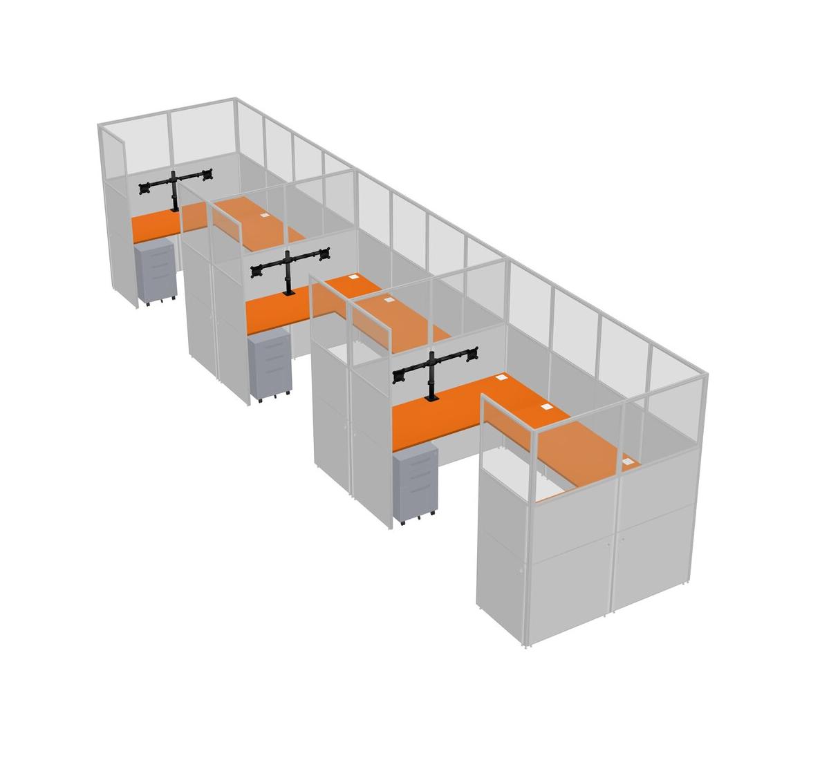 Système De Panneaux En U Orange Pour 3 Personnes + Bras De Moniteur (bras Doubles) + Tiroirs Mobiles En Métal Pour 3 Utilisateur(s)