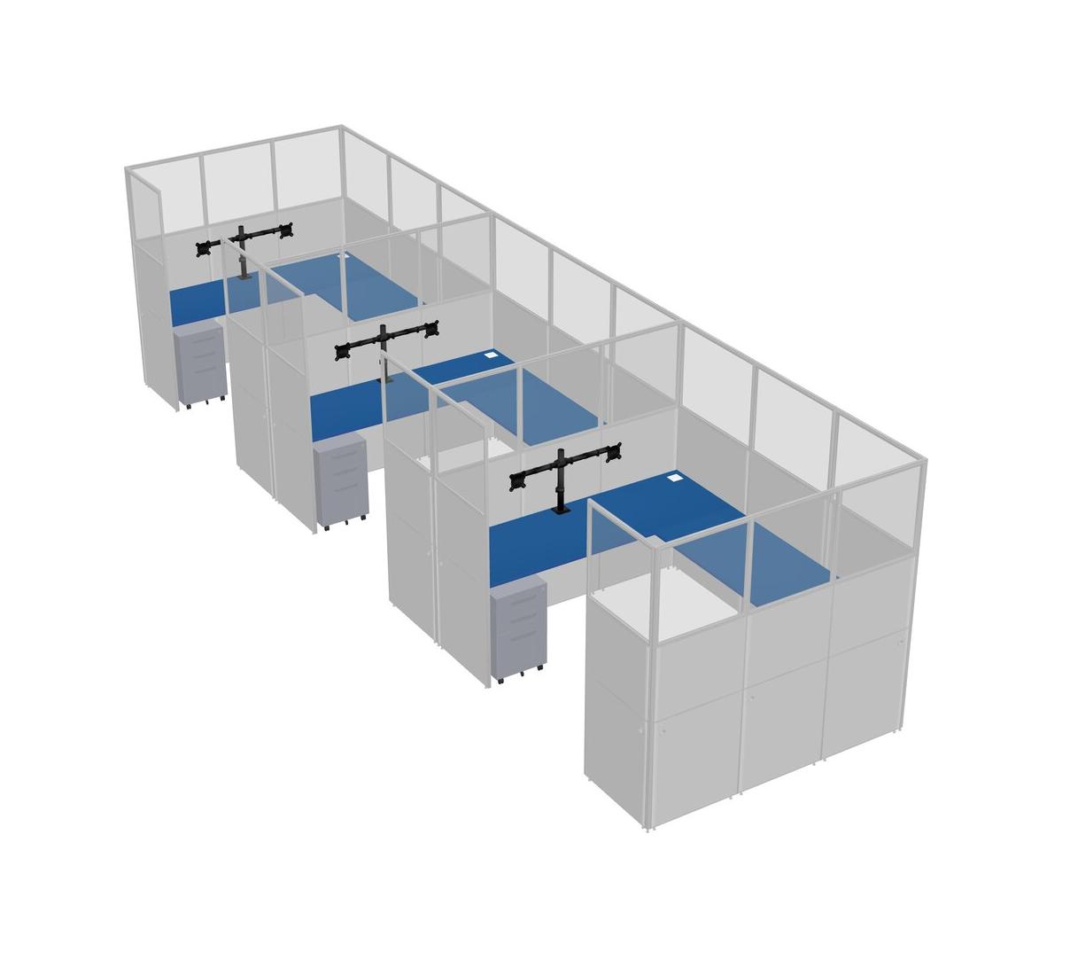 Système De Panneaux En U Prism Blue Pour 3 Personnes + Bras D'écran (bras Doubles) + Tiroirs Mobiles En Métal Pour 3 Utilisateur(s)