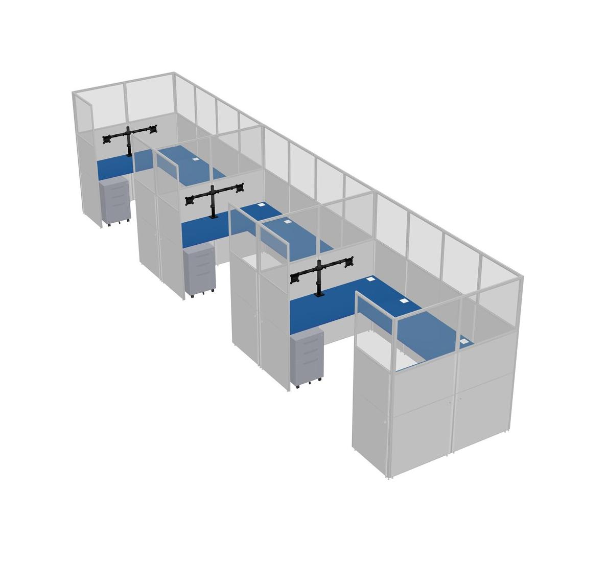 Système De Panneaux En U Prism Blue Pour 3 Personnes + Bras D'écran (bras Doubles) + Tiroirs Mobiles En Métal Pour 3 Utilisateur(s)