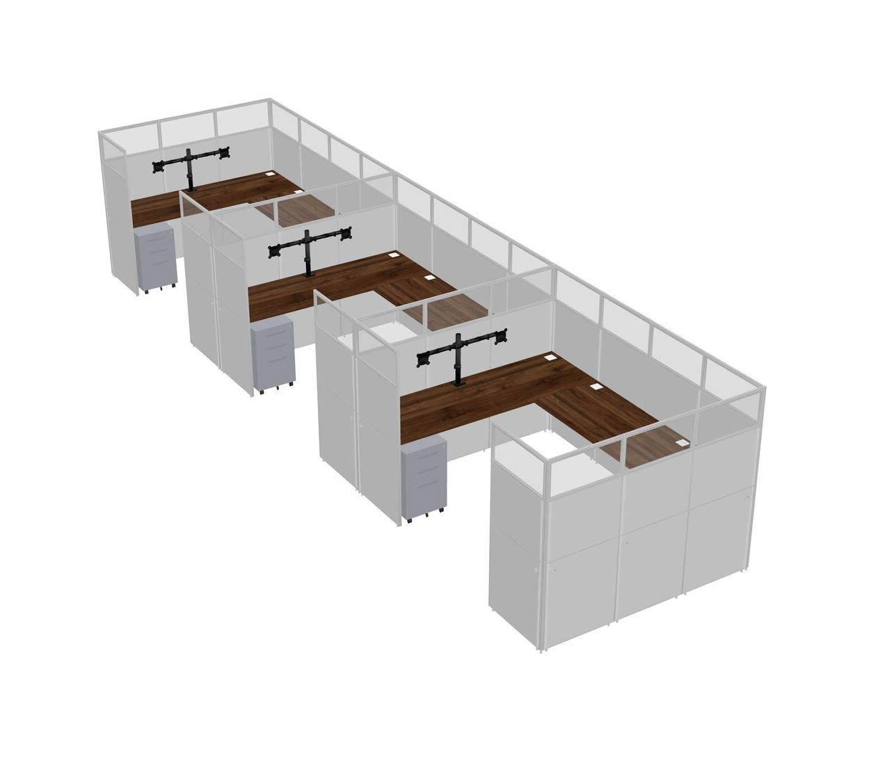Système De Panneaux En U En Noyer Columbia Pour 3 Personnes + Bras D'écran (bras Doubles) + Tiroirs Mobiles En Métal Pour 3 Utilisateur(s)
