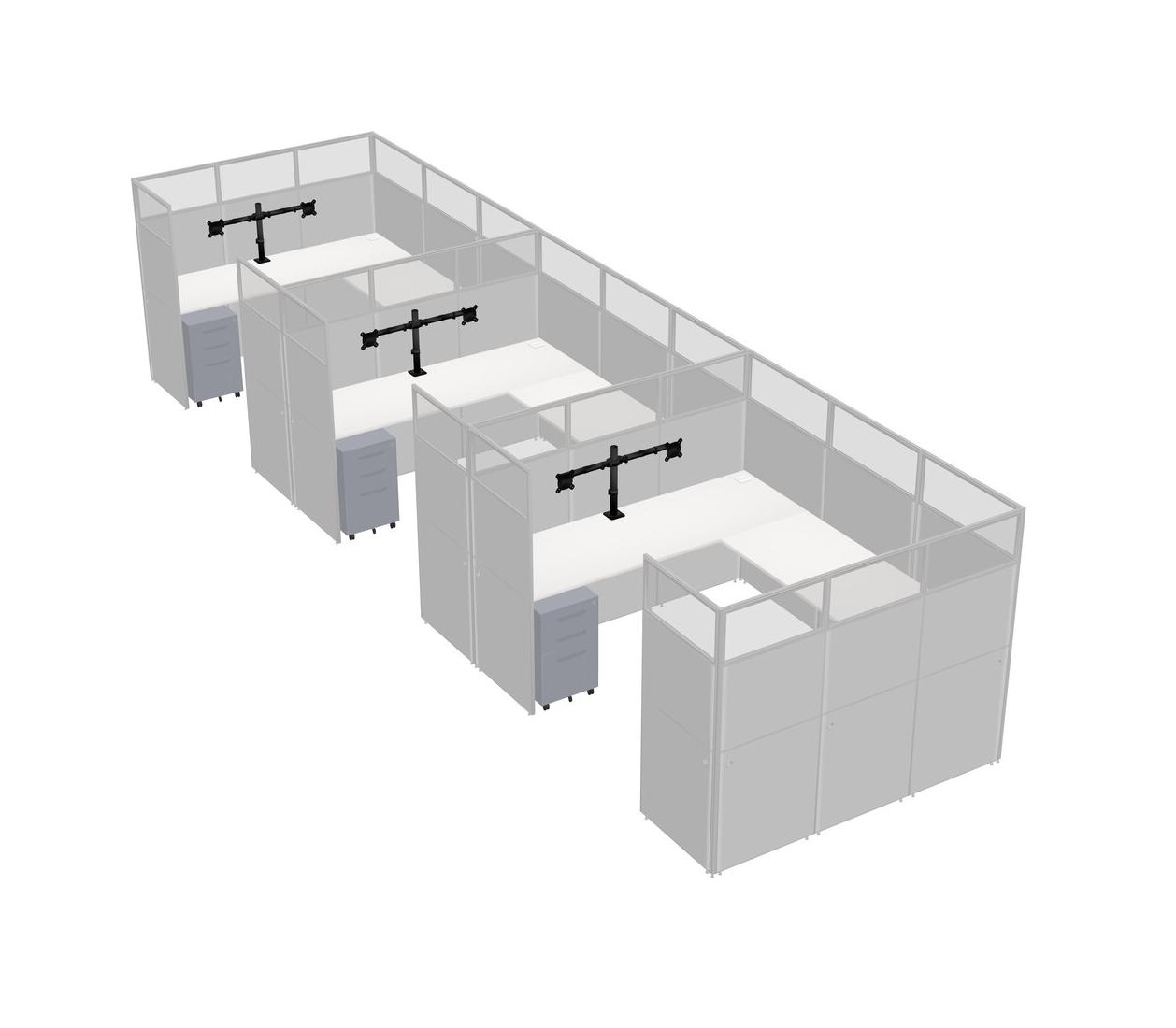Système De Panneaux Blancs En U Pour 3 Personnes + Bras D'écran (bras Doubles) + Tiroirs Mobiles En Métal Pour 3 Utilisateur(s)