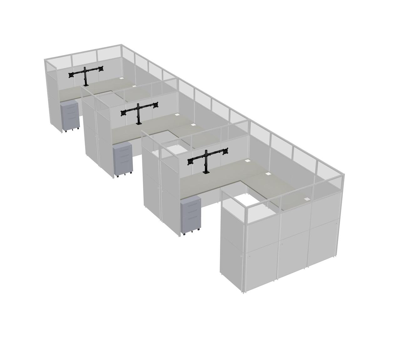 Système De Panneaux En U Grey Shadows Pour 3 Personnes + Bras D'écran (bras Doubles) + Tiroirs Mobiles En Métal Pour 3 Utilisateur(s)