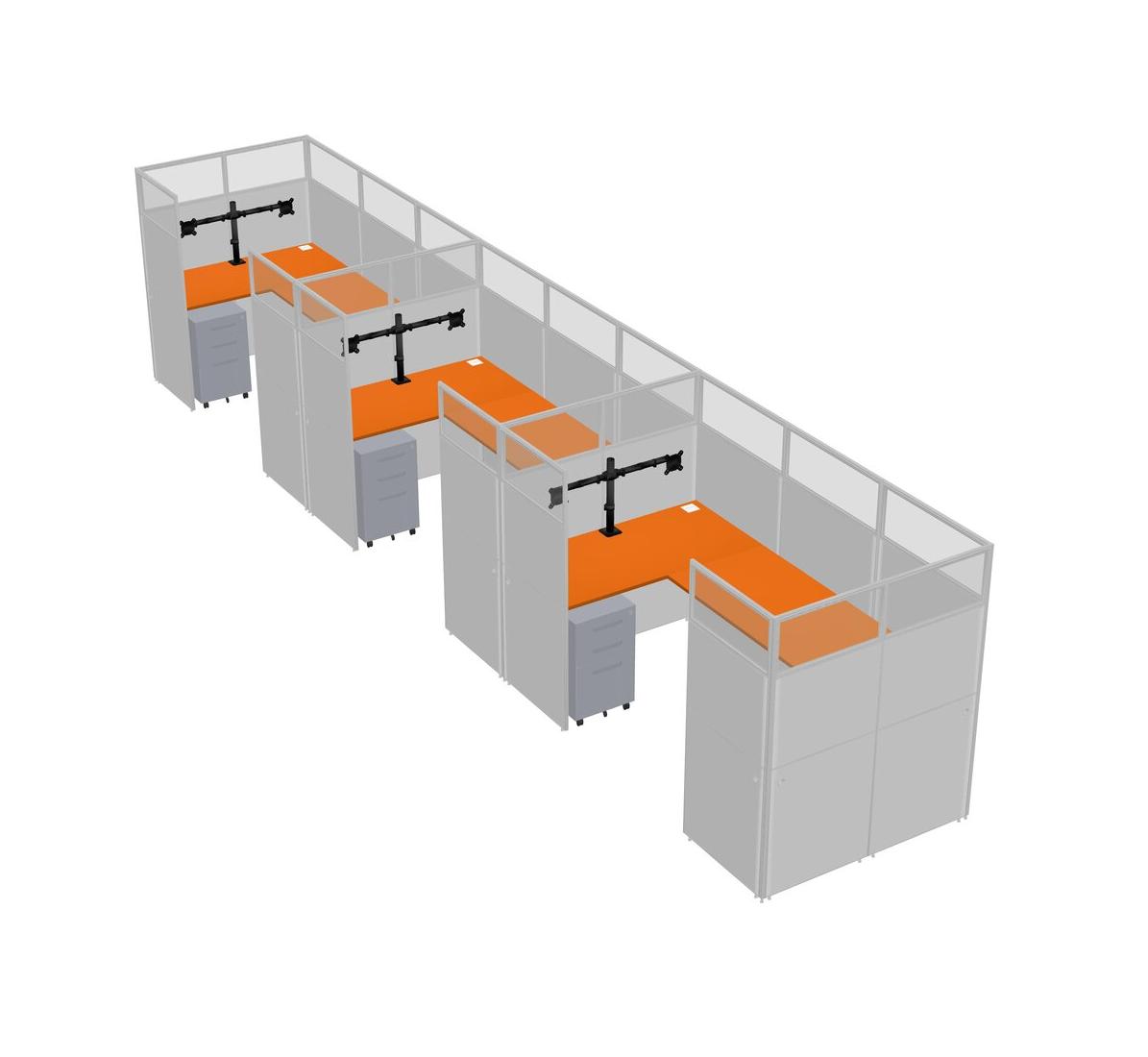 Système De Panneaux En U Orange Pour 3 Personnes + Bras De Moniteur (bras Doubles) + Tiroirs Mobiles En Métal Pour 3 Utilisateur(s)