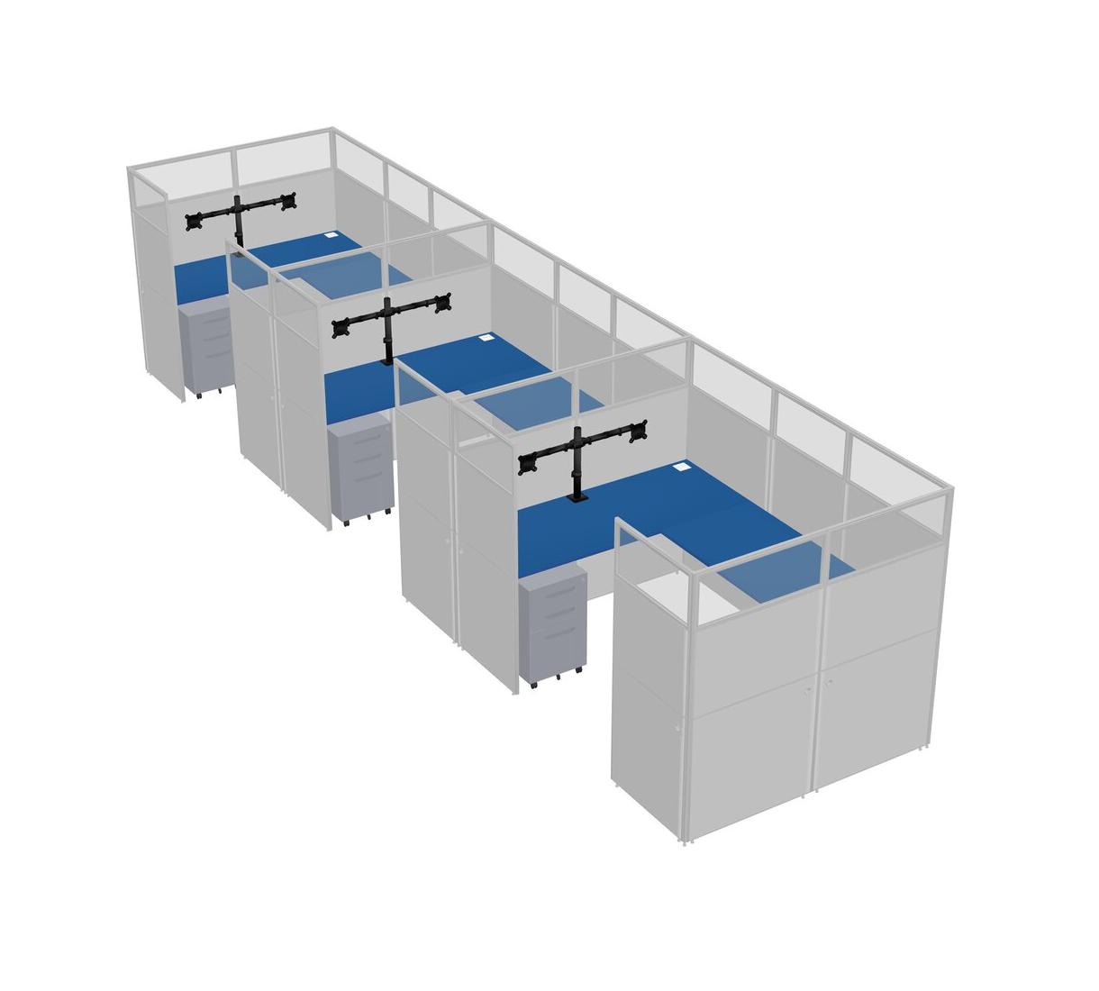 Système De Panneaux En U Prism Blue Pour 3 Personnes + Bras D'écran (bras Doubles) + Tiroirs Mobiles En Métal Pour 3 Utilisateur(s)