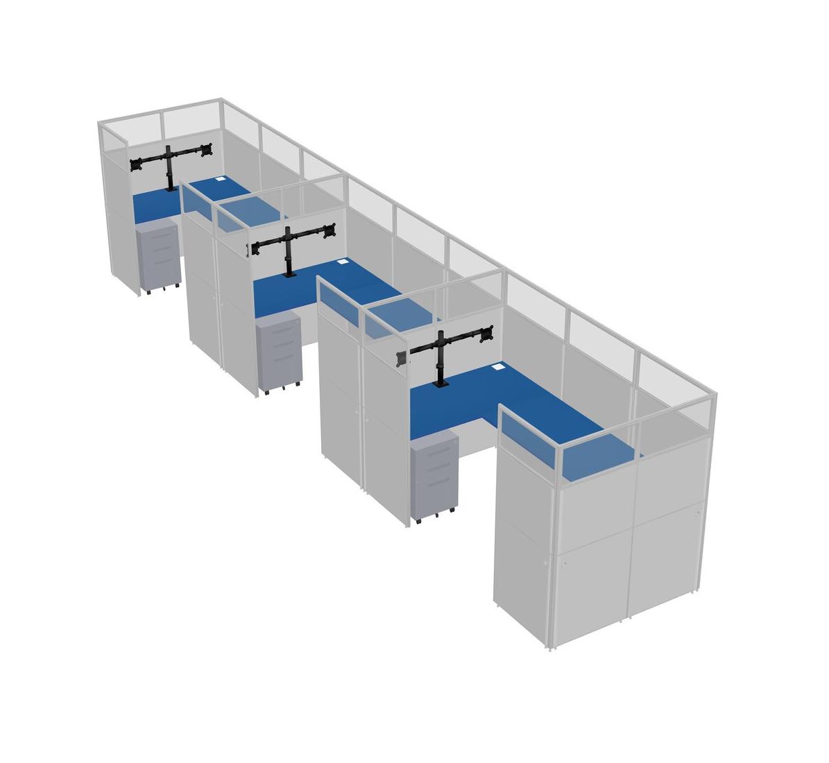Système De Panneaux En U Prism Blue Pour 3 Personnes + Bras D'écran (bras Doubles) + Tiroirs Mobiles En Métal Pour 3 Utilisateur(s)