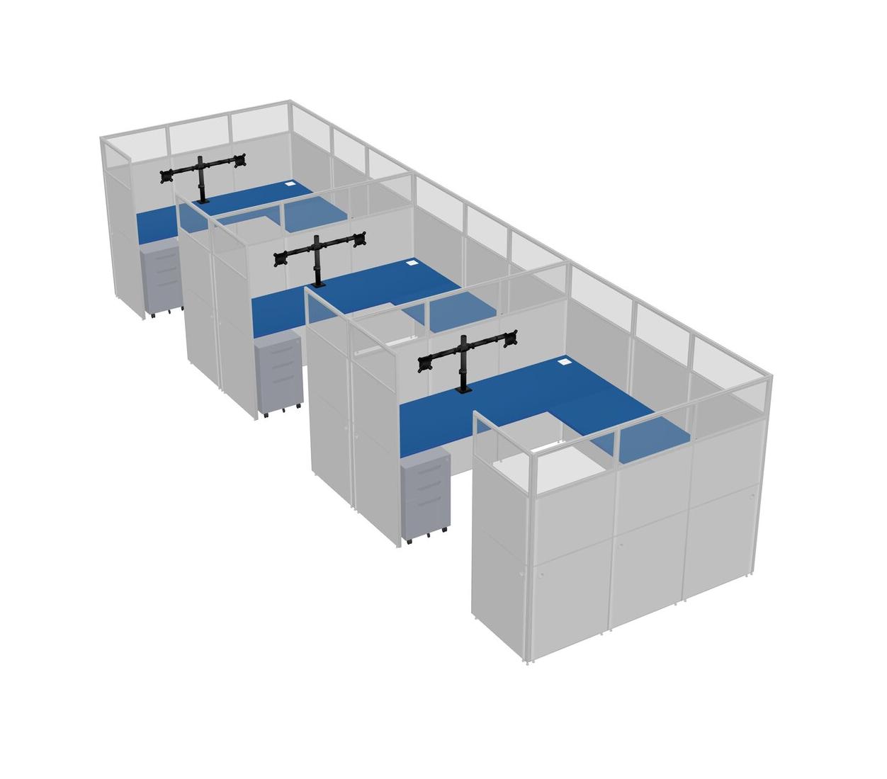 Système De Panneaux En U Prism Blue Pour 3 Personnes + Bras D'écran (bras Doubles) + Tiroirs Mobiles En Métal Pour 3 Utilisateur(s)