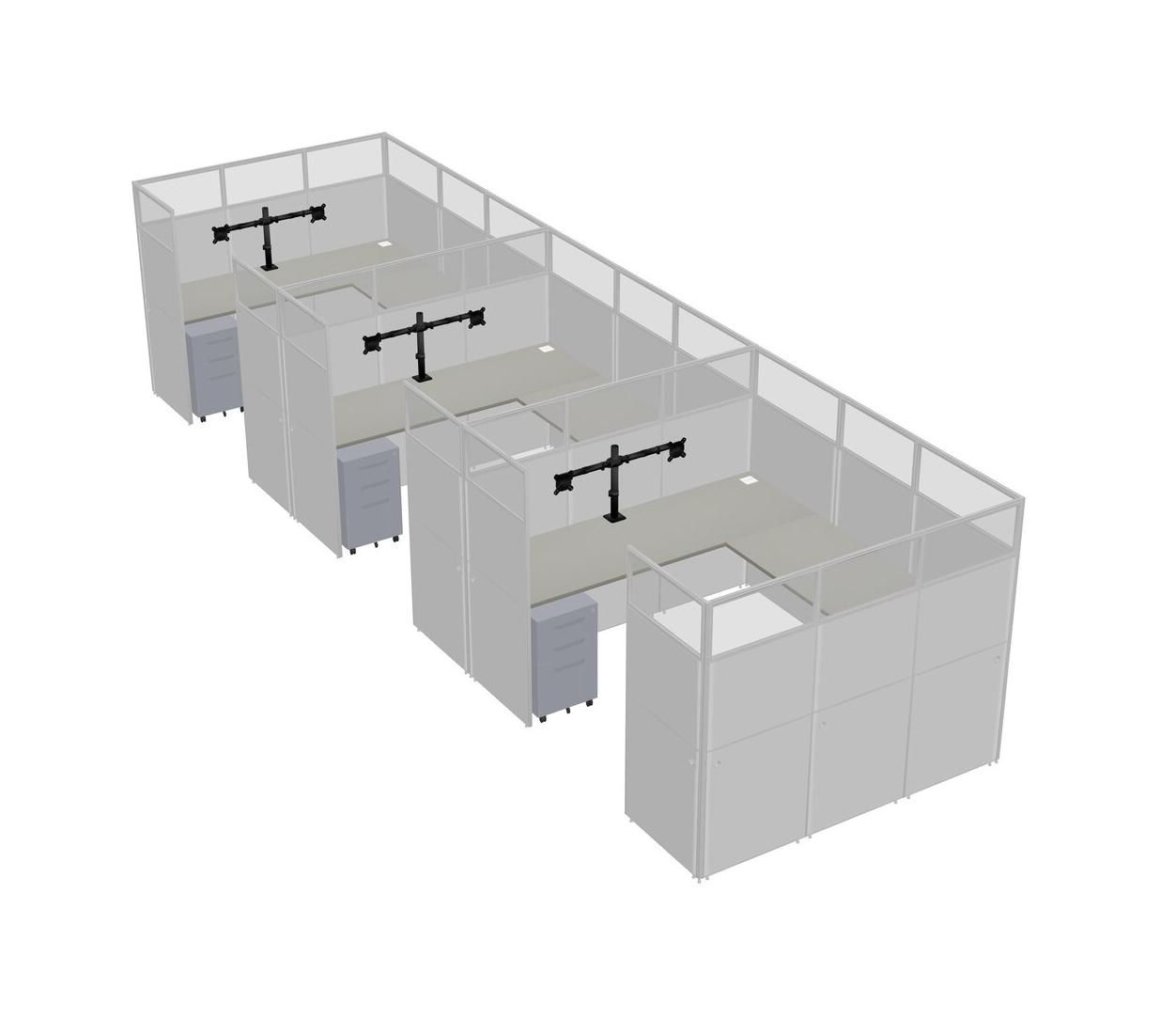Système De Panneaux En U Grey Shadows Pour 3 Personnes + Bras D'écran (bras Doubles) + Tiroirs Mobiles En Métal Pour 3 Utilisateur(s)
