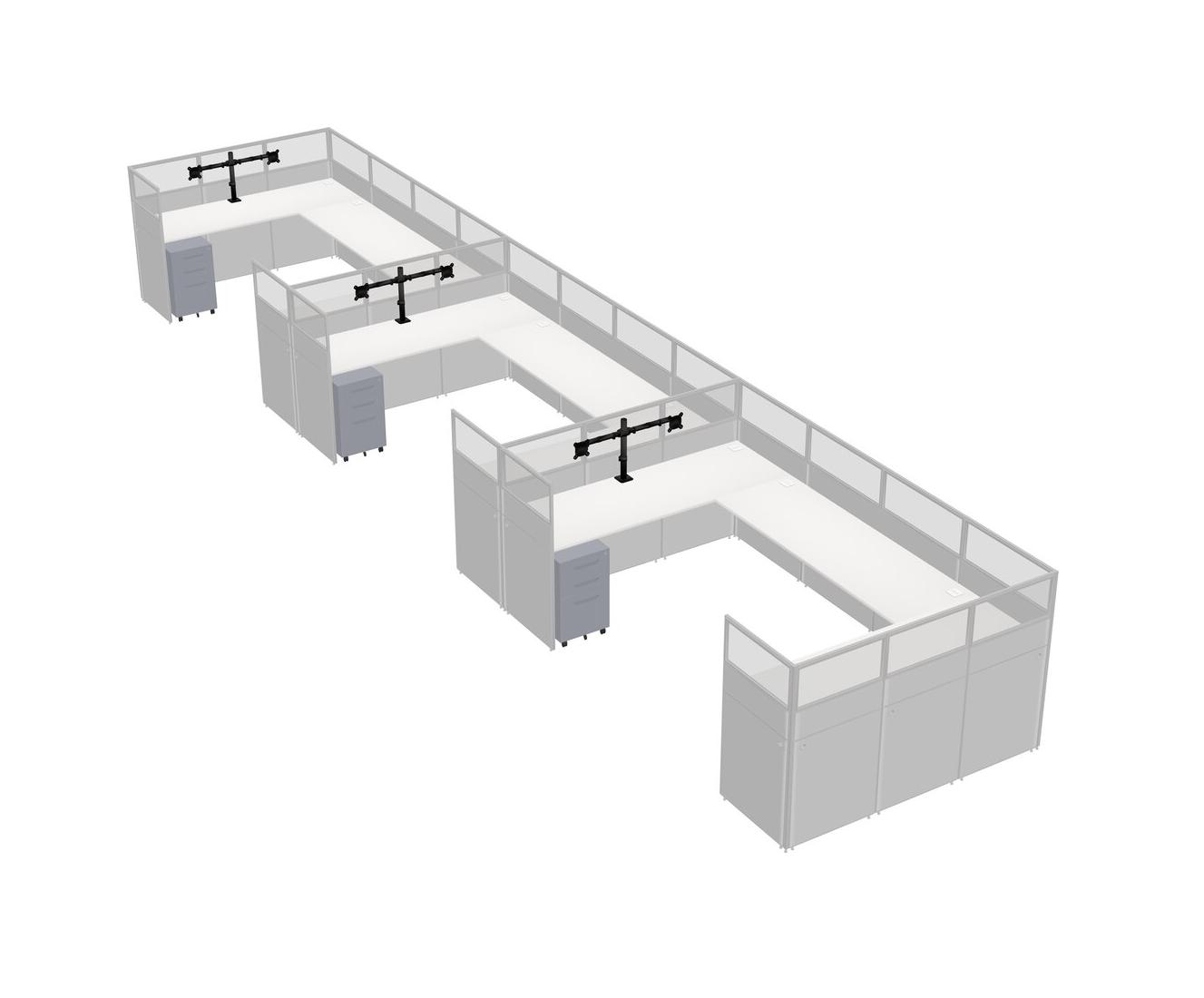 Système De Panneaux Blancs En U Pour 3 Personnes + Bras D'écran (bras Doubles) + Tiroirs Mobiles En Métal Pour 3 Utilisateur(s)
