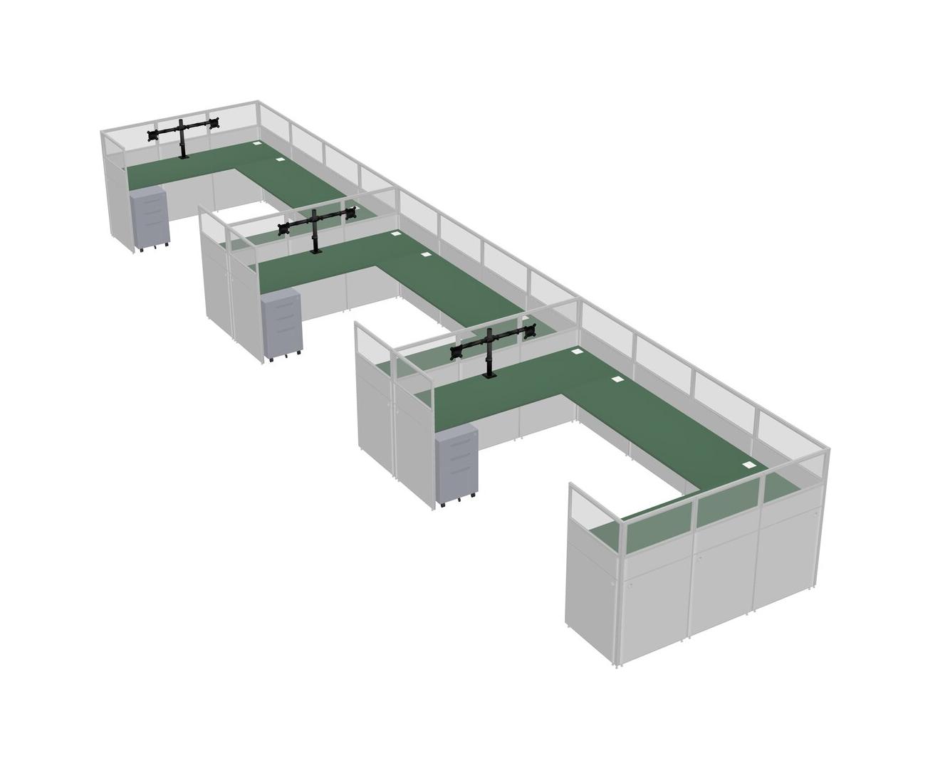 Système De Panneaux En U Vert Pour 3 Personnes + Bras De Moniteur (bras Doubles) + Tiroirs Mobiles En Métal Pour 3 Utilisateur(s)