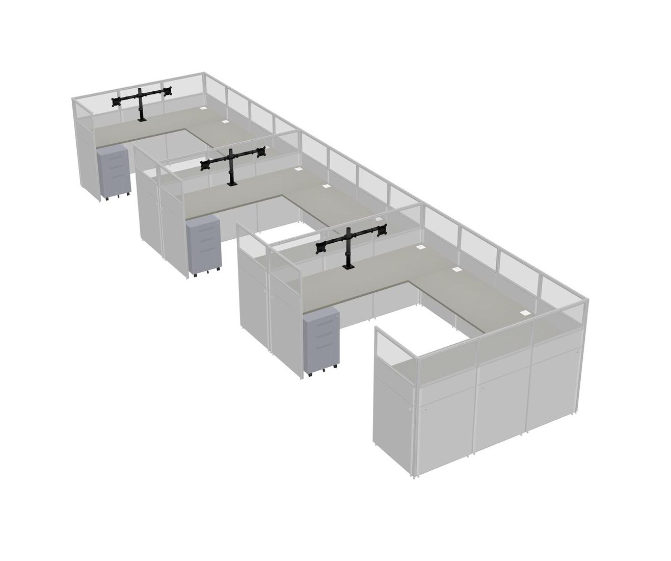 Système De Panneaux En U Grey Shadows Pour 3 Personnes + Bras D'écran (bras Doubles) + Tiroirs Mobiles En Métal Pour 3 Utilisateur(s)