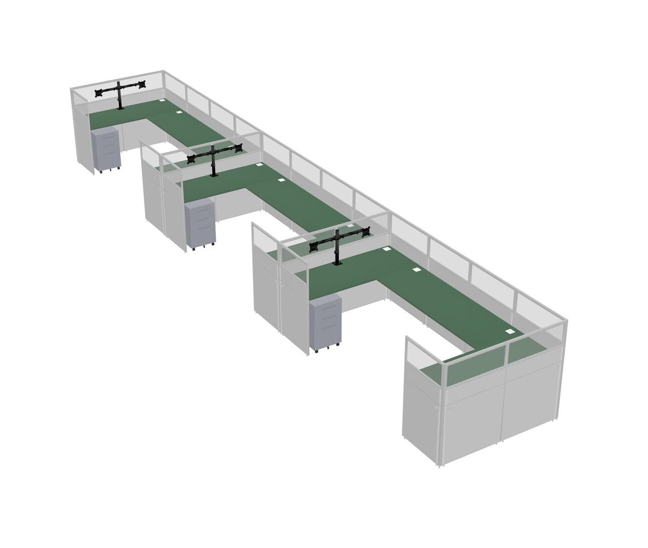 Système De Panneaux En U Vert Pour 3 Personnes + Bras De Moniteur (bras Doubles) + Tiroirs Mobiles En Métal Pour 3 Utilisateur(s)